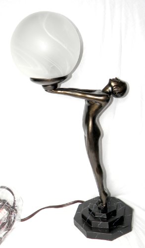 Art Deco Nude Lady Table Lamp Statue Bronze Woman