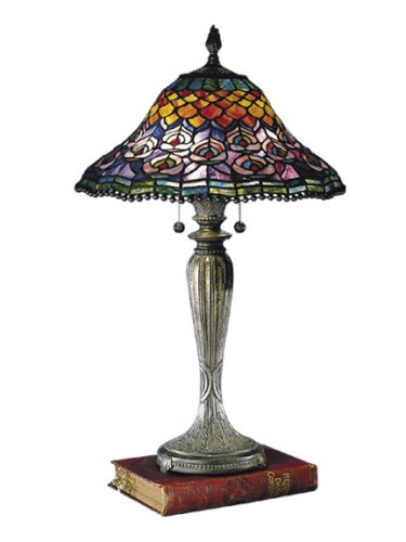 Dale Tiffany 8503/767 Peacock Tail Table Lamp, Fieldstone and Art Glass Shade